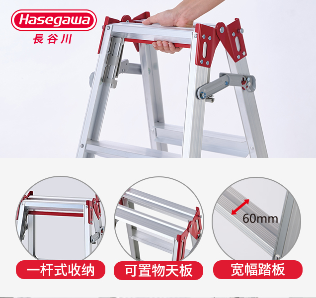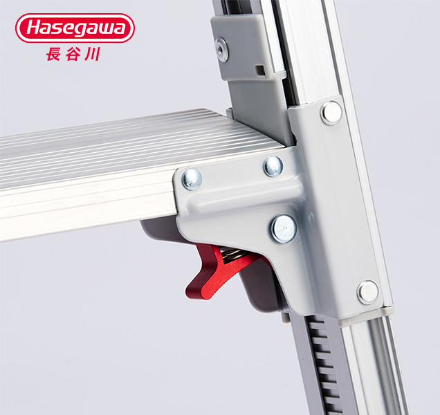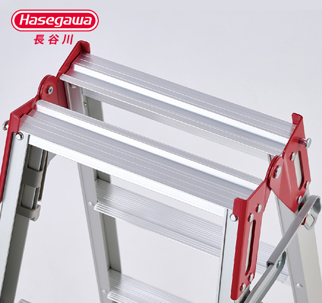 L形关节折叠式锁扣加固使用时的稳定性同时轻松帮助完成人字梯到直梯直梯的切换。(注:*-09~21为人字梯兼直梯;*-24~30为仅为专用人字梯)