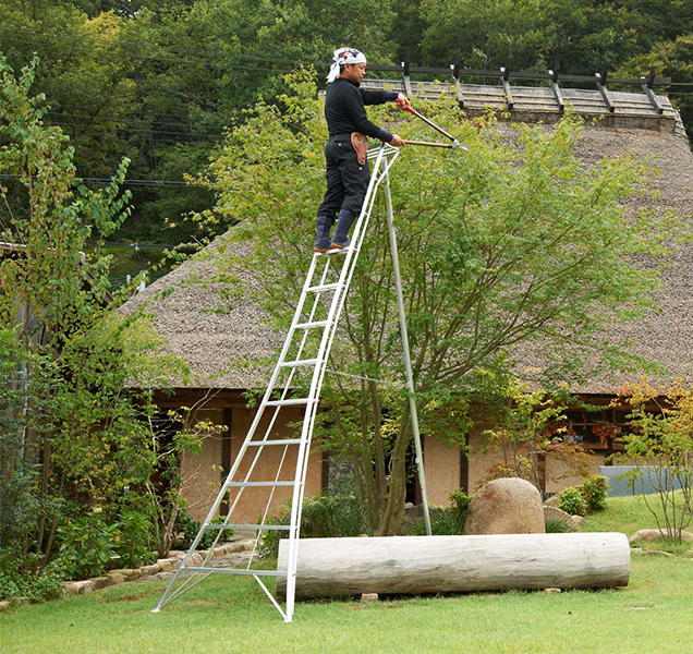 灵活利用三角形稳定性,充分发挥三角形稳固、坚定、耐压等特殊的力学特点。加上可调节高度的脚部,让梯子能轻松应对园林内的各种地形。