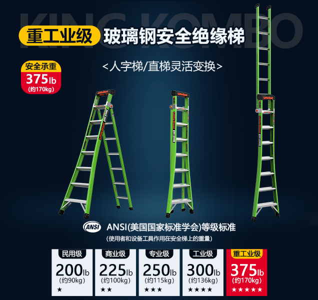 KING KOMBO 美国LittleGiant多功能折叠玻璃钢绝缘加厚工程直梯人字梯
