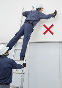 - 在梯子和屋顶之间来回移动时,梯子会摇晃而不稳定。请务必让辅助人员扶稳梯子,保持其稳定状态。