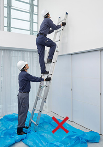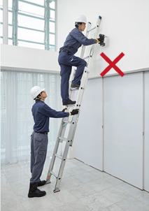 - 将梯子倚靠屋顶等场所时,梯子和建筑物的最佳接触点为踏板从上往下数第2~3级的位置。
