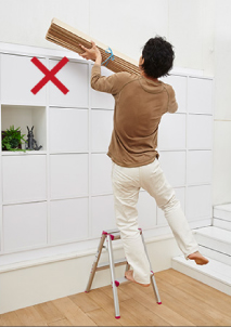 如果站在梯子上,强行推拉墙壁或物品,可能会因反作用力失去平衡,存在跌倒危险。